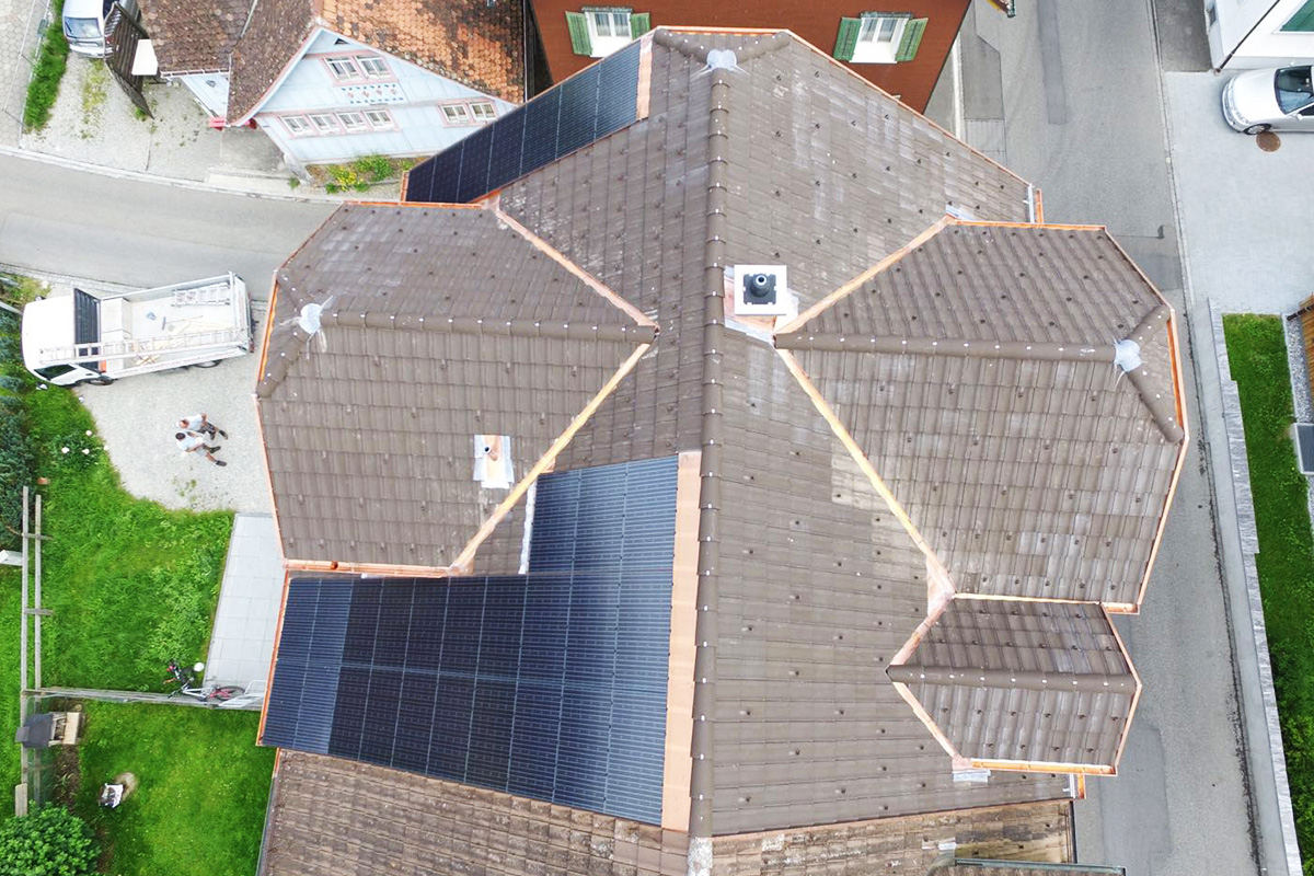 Die Photovoltaikanlage passt ideal aufs Dach. Damit sie dort ohne grossen Unterhalt und viele Jahre ihre Funktion erfüllt, ist eine saubere Montage nötig. Je nach Anlage (Indach-Systeme) übernehmen die Panels teilweise oder vollständig die Dachfunktionen. Daher beginnt die Photovoltaikanlage beim sauberen Dachaufbau, der Wärmedämmung, dem Montagsystem und reicht bis zur perfekten Montage der einzelnen Panels und der Vernetzung mit der Einspeisung.